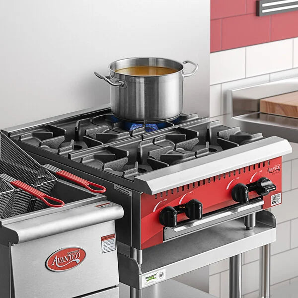 Perfect for busy operations that are tight on space, this Avantco Chef Series gas 24" 4 burner countertop range adds easy compact convenience to your kitchen!