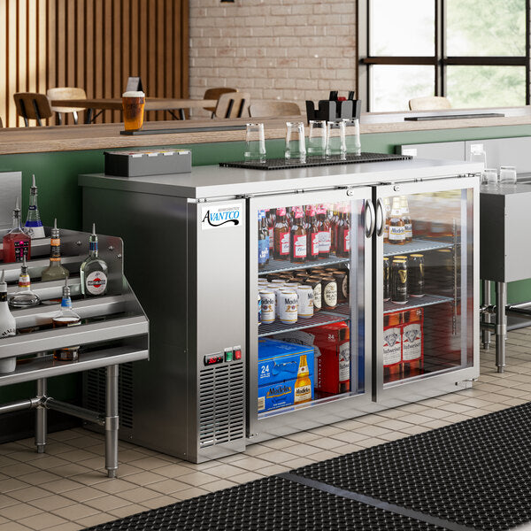 Keep your bar stocked and ready to go with the Avantco UBB-60G-HC-S 60" narrow glass door stainless steel back bar cooler.