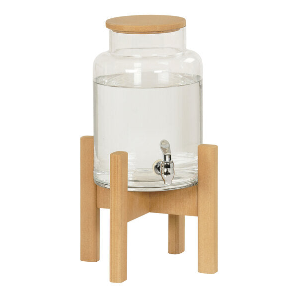 Enhance the style and efficiency of your beverage service with this Cal-Mil Renew 3 gallon round glass beverage dispenser with ice chamber and faux wood base. With a crystal-clear glass construction, this item offers excellent product visibility to best showcase your specialty drinks. It's perfect for serving anything from freshly squeezed lemonades and fruit juices to delicious homemade teas. You can even guarantee that your drinks remain chilled for longer by adding ice to the dispenser's interior chamber. This chamber will keep your beverages cold without diluting them. A drip tray is also included for keeping your countertops clean and dry.