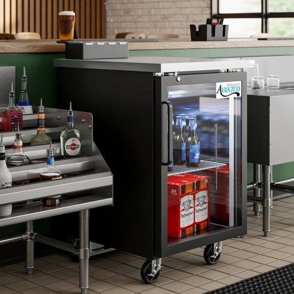Coolers Avantco UBB-1G-HC 23" Black Glass Door Back Bar Refrigerator