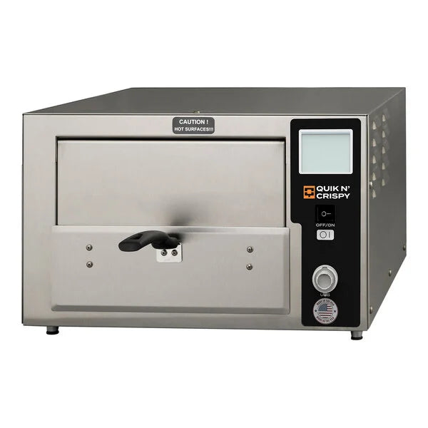 Offer popular fried foods at your restaurant, concession stand, or bar with this Quik n' Crispy Model GFII air fryer! Using forced hot air, radiant heat, and an elevated, perforated cooking basket, this air fryer creates the taste and texture of deep-fried foods without the use of hot grease. This allows you to offer healthier foods with 20% to 40% less fat than traditional fried foods. This convenient air fryer increases the speed of service, saves labor, and reduces costs, making it a great addition to any commercial kitchen.